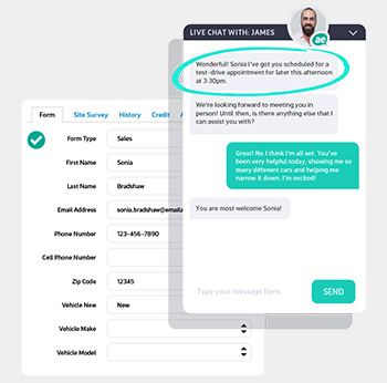 ActivEngage’s web-based platform is your hub for all digital conversations. Features like PreRead™ and Lead Form AutoFill help your team’s efficiency, while Chat Transfer and Lead Routing offer a seamless experience for you and your customers. And, all chat transcripts and lead information are sent directly to your CRM for streamlined, effective follow-up.