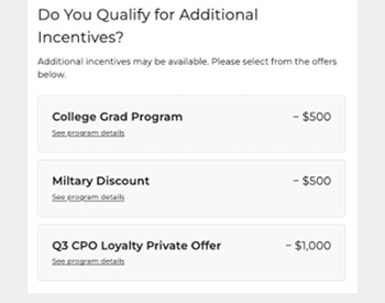 Offering dealers the ability to control current incentives and rebates from vehicle to vehicle.
